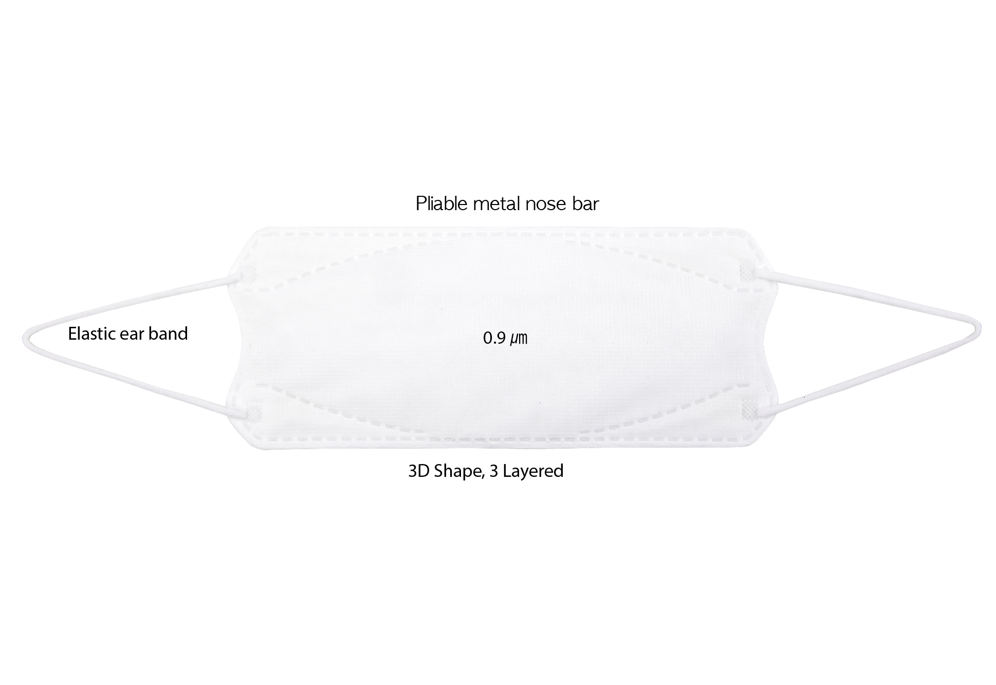 · 3 Layer with High Filtration (0.8~0.9 µm) Average size of the droplet is 5 µm. (Pollen 20 µm.) Don’t worry about infections through droplets.